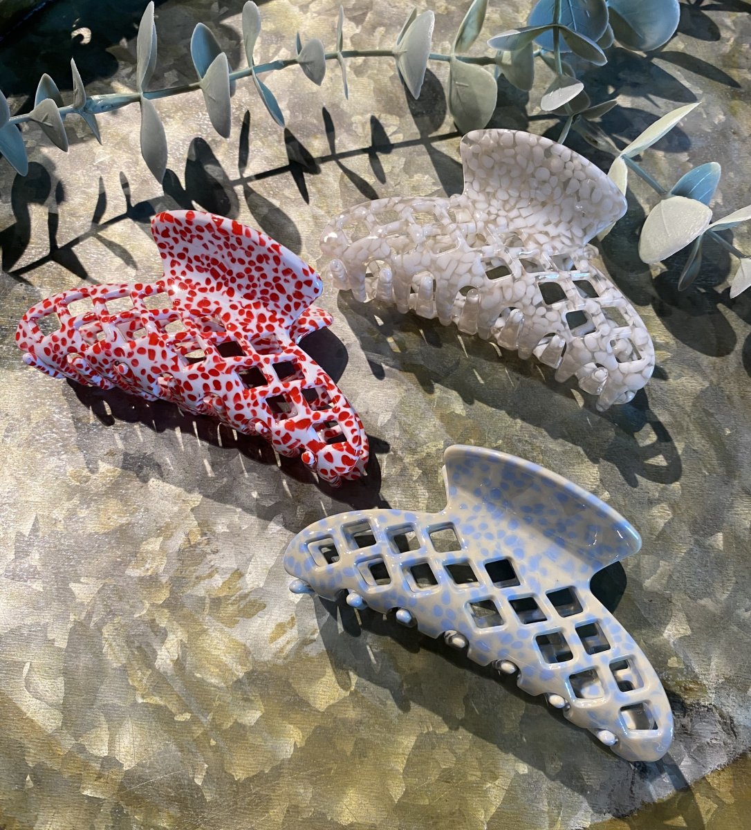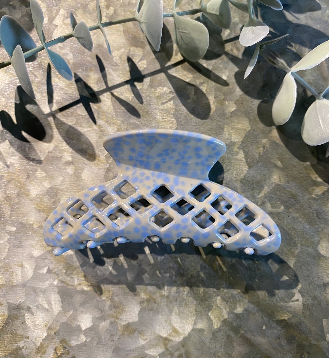 En hårkklämma med nätmönster. Längd: 8cm