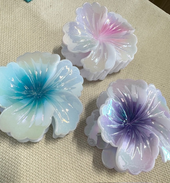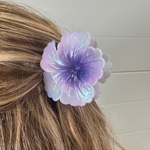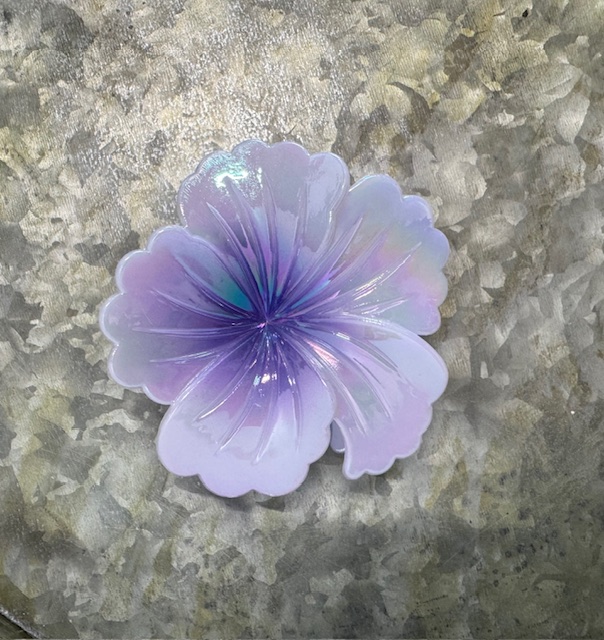 Glansig hårklämma i form av en blomma, med en längd på ca 7,5cm.