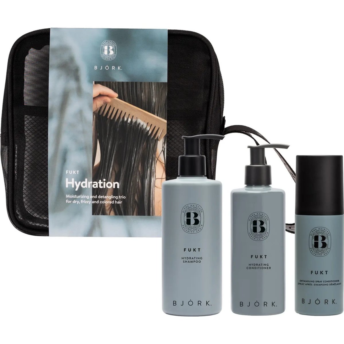 Björk Winter Bag 2025 FUKT är den kompletta lösningen för dig som vill ge ditt torra, frissiga och färgade hår den intensiva återfuktning det behöver. Detta stilrena hårvårdskit innehåller tre storfavoriter som tillsammans skapar en silkeslen känsla och återställer hårets naturliga lyster. Förpackat i en elegant necessär av återvunnet material får du salongskvalitet hemma - det är nordisk precision när den är som bäst.