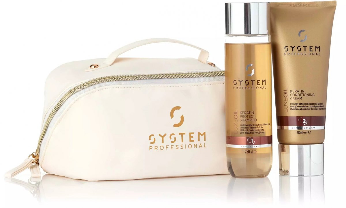 Lyxig hårvård som framhäver ditt hårs unika charm – den perfekta gåvan för högtiden. System Professional LuxeOil Shampoo är ett lätt och närande schampo för alla hårtyper. Denna utslätande rengöring, berikad med argan-, mandel- och jojobaolja, hjälper till att återfukta och vårda håret, läka sköra och kluvna toppar samt förbättra hårets struktur. System Professional LuxeOil Conditioner är ett stärkande och närande balsam för alla hårtyper. Detta balsam stärker, mjukgör och slätar ut håret samtidigt som den bygger upp motståndskraft mot svagt hår och skyddar det mot stylingstress.